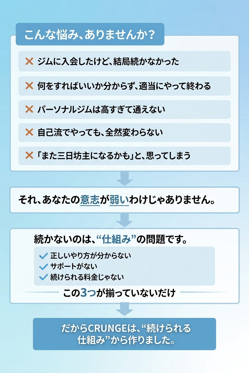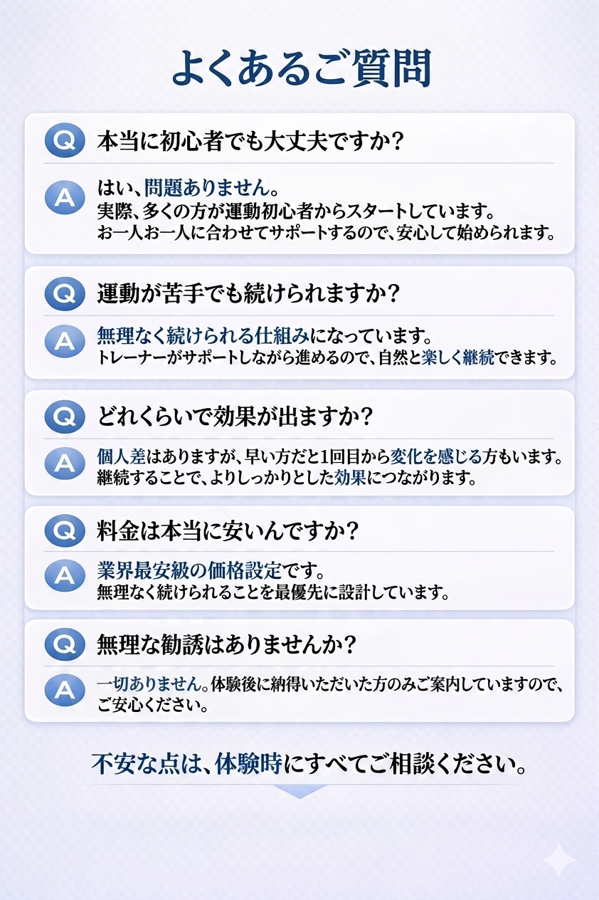 実際の感想:時間の調整も柔軟に対応していただけて、楽しく筋トレができる環境です。
