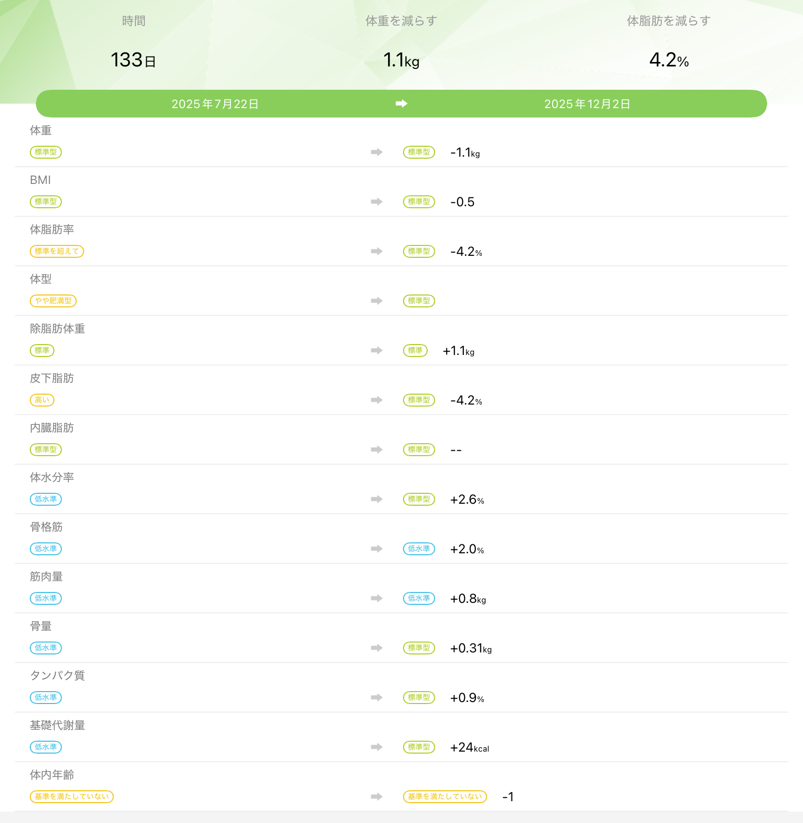 実際の感想:短い時間の筋トレと食事で、体脂肪が落ちた。隙間時間の有効活用で、引き締めることができた。